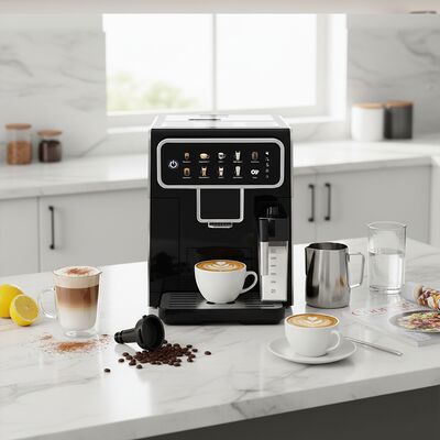 이 로 집이나 사무실에서 카페 품질의 커피를 즐기세요.자동 커피 머신 전문적인 압력 추출을 위한 15 바 ULKA 펌프 를 특징으로 합니다. 1350W 의 전력은 빠른 추출을 제공하며, 1.5L 물 탱크 및 300g 원두 호퍼 는 리필 없이 여러 잔을 만들 수 있습니다. 터치 스크린 디스플레이 는 에스프레소, 카푸치노, 라떼, 아메리카노, 뜨거운 우유, 뜨거운 물을 쉽게 선택할 수 있게 합니다. 내장형 조절식 그라인더 는 매 잔마다 신선하게 갈린 원두를 보장합니다. 자동 우유 거품기 시스템은 스페셜티 음료를 위한 크리미한 거품을 만듭니다. 자가 세척 기능은 유지 관리를 간소화합니다. 스테인리스 스틸 본체 와 프로그래밍 가능한 설정 및 온도 제어 는 일관된 결과를 보장합니다. 가정, 사무실 및 상업용으로 완벽합니다.
