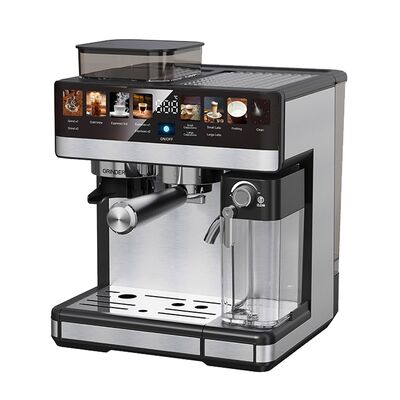 Master both hot and cold coffee drinks with this 20 Bar espresso machine featuring thermoblock heating system for fast, precise temperature control. The 1350W power delivers quick heat-up, while cold brew and cool milk functions let you create refreshing iced coffee alongside traditional espresso, cappuccino, and latte. The 2.6L water tank allows multiple cups without frequent refilling. The touch screen display makes operation intuitive, while the built-in adjustable grinder ensures freshly ground beans.